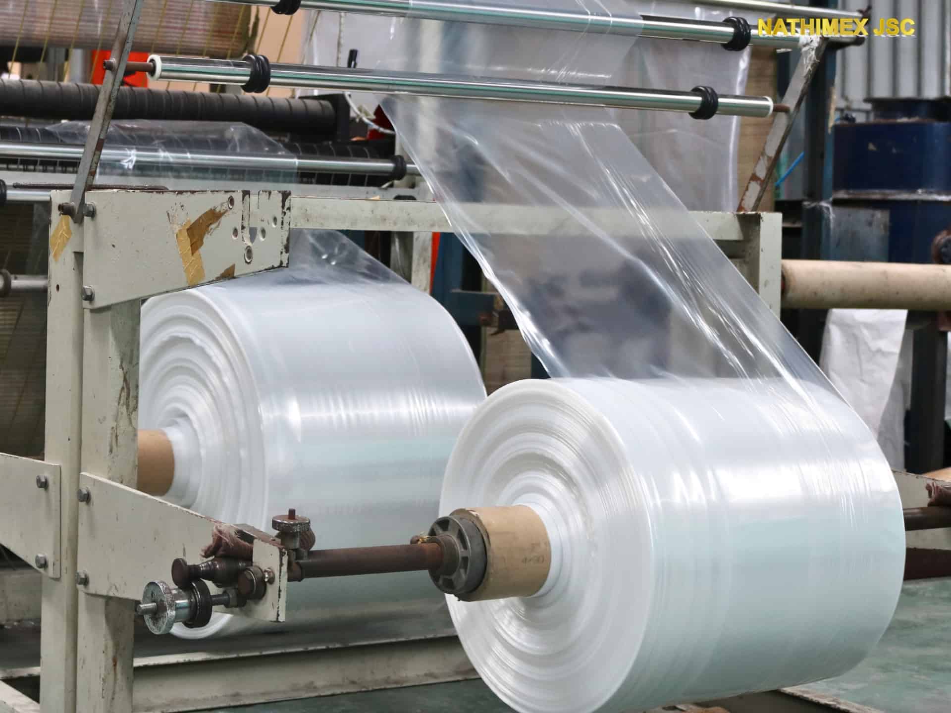 Quá trình đùn thổi diễn ra trên dây chuyền tự động, giúp màng nhựa có độ dày đồng đều, không lẫn tạp chất và bề mặt sáng bóng.